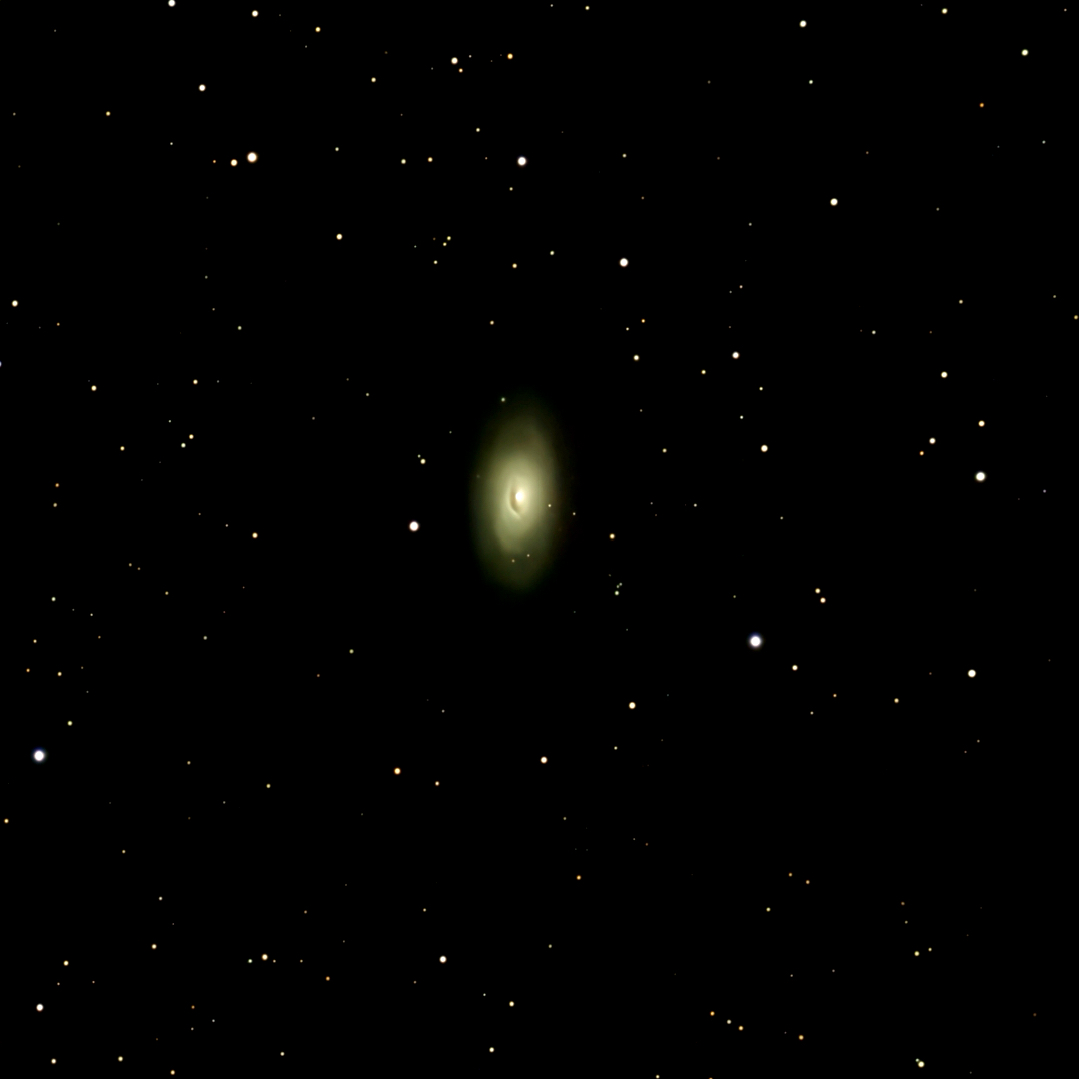 The Black Eye Galaxy (also called Sleeping Beauty Galaxy or Evil Eye Galaxy and designated Messier 64, M64, or NGC 4826) is a relatively isolated[7] spiral galaxy17 million light-years away in the mildly northern constellation of Coma Berenices. It was discovered by Edward Pigott in March 1779, and independently by Johann Elert Bode in April of the same year, as well as by Charles Messier the next year. A dark band of absorbing dust partially in front of its bright nucleus gave rise to its nicknames of the “Black Eye”, “Evil Eye”, or “Sleeping Beauty” galaxy.[12][13] M64 is well known among amateur astronomers due to its form in small telescopes and visibility across inhabited latitudes.