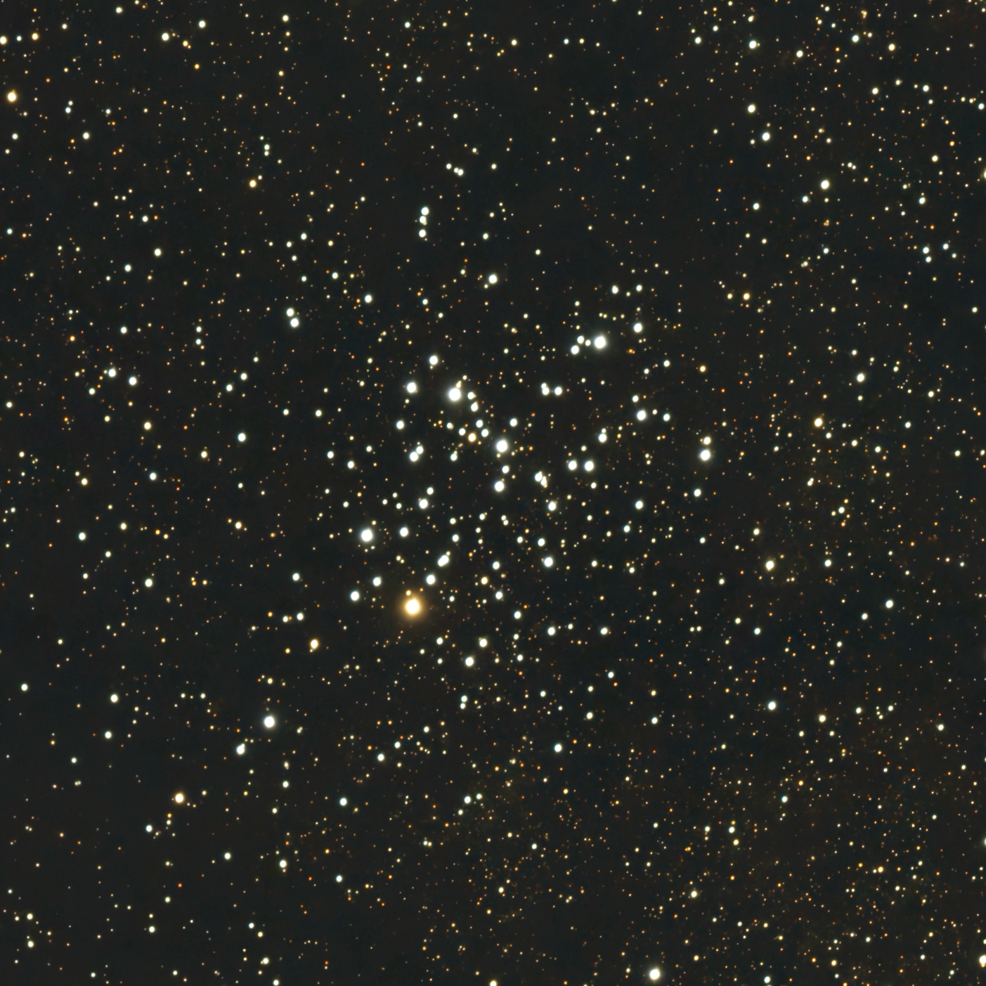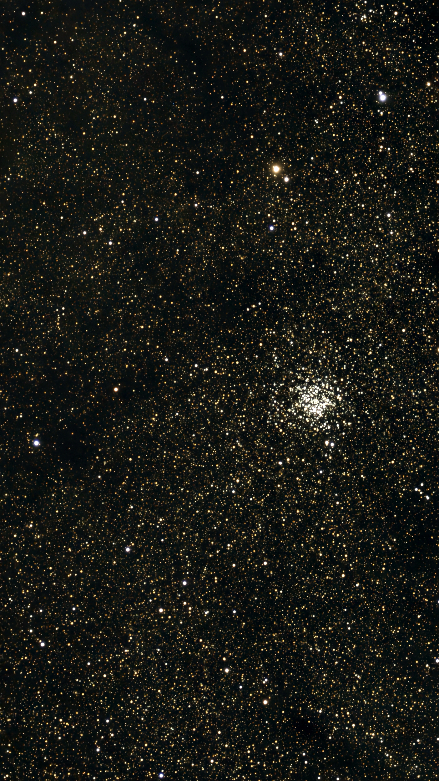 The Wild Duck Cluster (also known as Messier 11, or NGC 6705) is an open clusterof stars in the constellation Scutum (the Shield). It was discovered by Gottfried Kirch in 1681.[3] Charles Messier included it in his catalogue of diffuse objects in 1764. Its popular name derives from the brighter stars forming a triangle which could resemble a flying flock of ducks[3] (or, from other angles, one swimming duck). The cluster is located just to the east of the Scutum Star Cloud midpoint.
