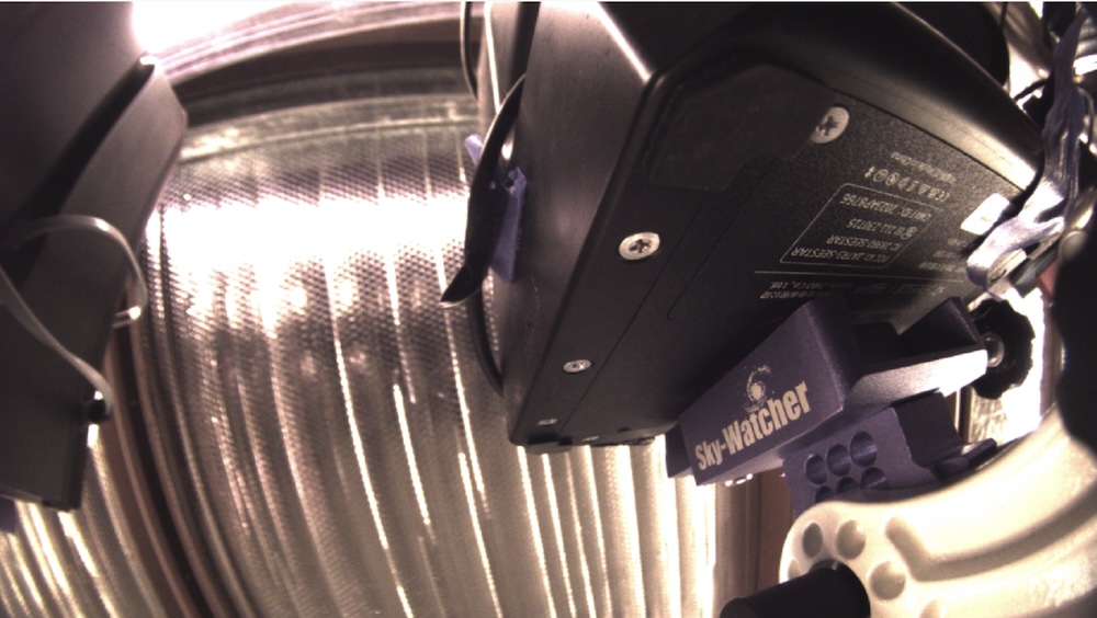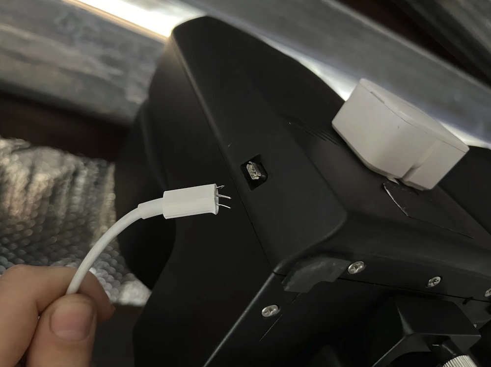 So in sharing this issue with a friend of mine, Denis Martinez of Astroturismo Las Grutas in Argentina, he suggested running the cable up the side of the Seestar to reduce the cable wrap. I immediately set up my S50 in EQ mode next to my desk and used a piece of painters tape to hold the cable on the unit. Then I turned on the Seestar and started to move it around using the on screen joy stick. Suddenly, I realized this might actually work!